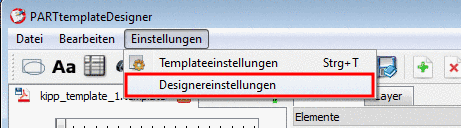 Der Aufruf des entsprechenden Dialoges erfolgt über Einstellungen-Menü -> Designereinstellungen