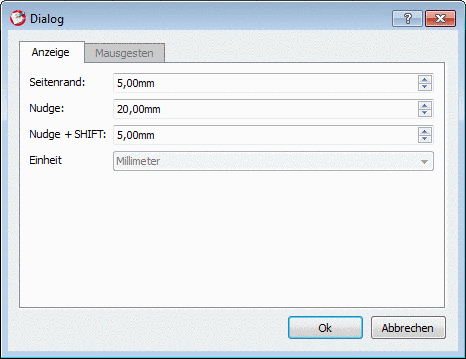 Nudge: Hiermit stellen Sie den Versatz eines markierten Elementes pro Klick mit der Pfeiltaste ein. Kleinerer Versatz.