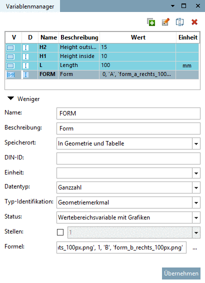 Im ersten Schritt erstellen Sie im Variablenmanager eine Wertebereichsvariable. Hier im Beispiel FORM.