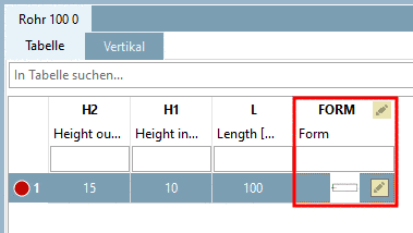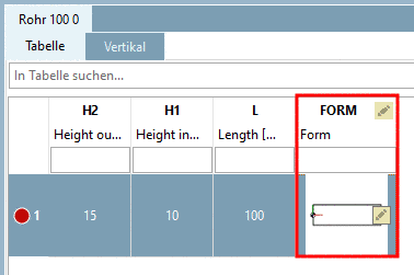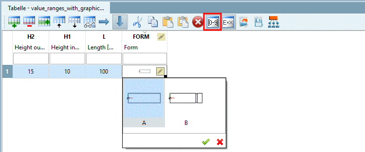 Klicken Sie in der Spalte FORM auf das Wertebereichssymbol
