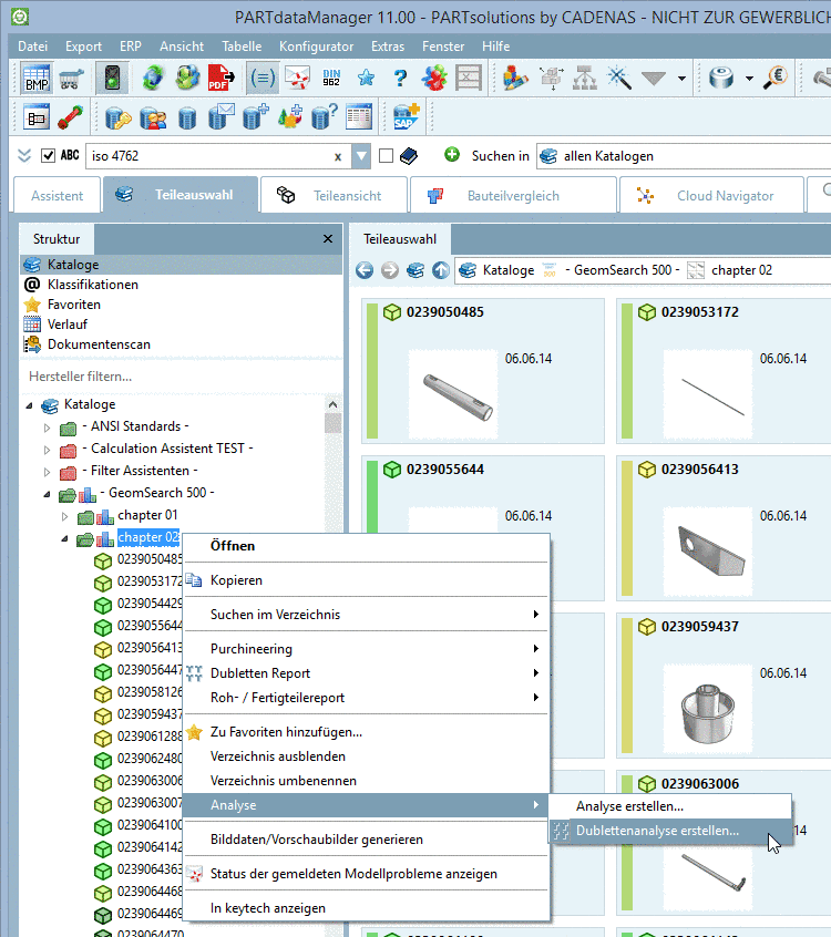 Klicken Sie im Strukturbaum auf Analyse -> Dublettenanalyse erstellen....