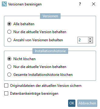 V9.03 ist die Option Datenbankeinträge bereinigen