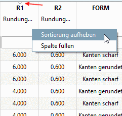 Der Kontextmenübefehl Sortierung aufheben stellt die