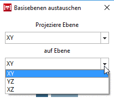 wechseln. Wählen Sie dazu die zu projizierende Ebene und die neue Ebene. Bestätigen Sie anschließend mit