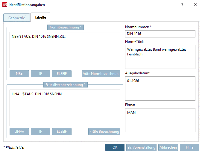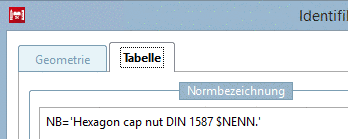 Wenn Sie das Fenster Identifikationsangaben öffnen, ist der Ausdruck NB=’’bereits vorhanden, kann allerdings auch über den Button eingefügt werden.