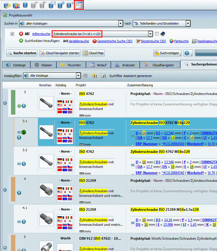 Mittels kann gewählt werden zwischen Baum-, Cloud- und Spirale-Darstellung. Unabhängig vom Layout-Typ und der aktuellen Vergrößerung (mittlere Maustaste), wird die Teileinformation in groß angezeigt, wenn Sie die Maus über ein Teil bewegen.