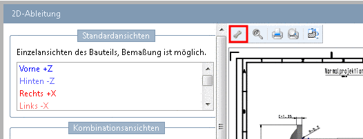 In der 2D-Ableitung können Sie die Kombinationsansichten im Bearbeitungsmodus bearbeiten und speichern. Hierzu müssen Sie sich im Admin-Modus befinden (zu erkennen im PARTdataManager in der Statuszeile rechts unten).[103]