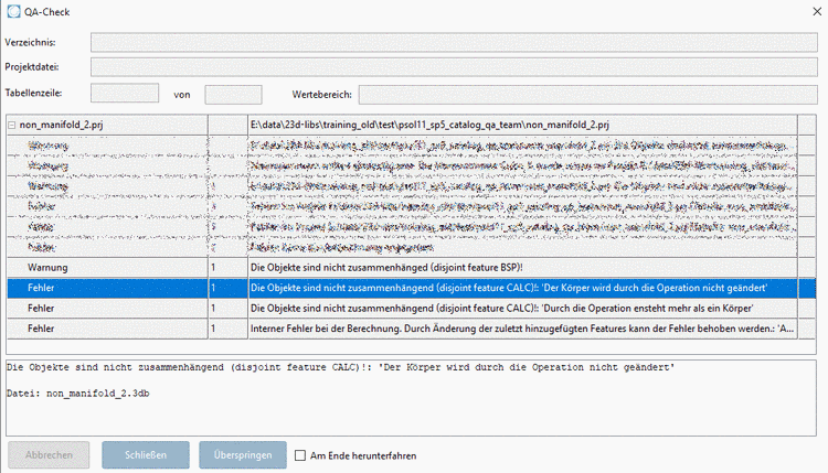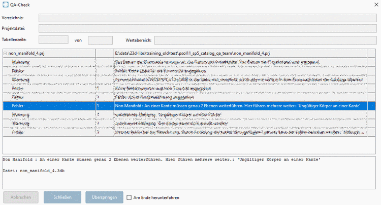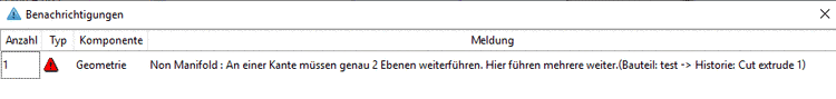 Im Dialogfenster QA-Check erscheint ebenfalls die Fehlermeldung Non manifold.