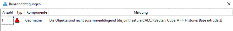 angezeigt.Das Dialogfenster Benachrichtigungen weist den Fehler aus. "Die Objekte sind nicht zusammenhängend".