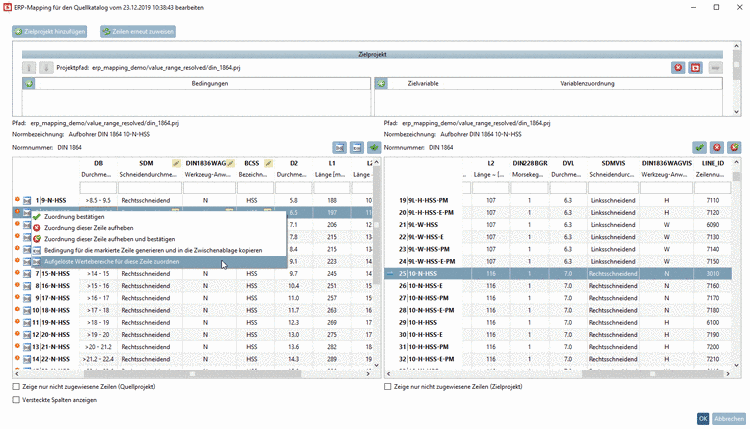 Klicken Sie nun in einer Zeile auf das Icon Aufgelöste Wertebereiche zuordnen
