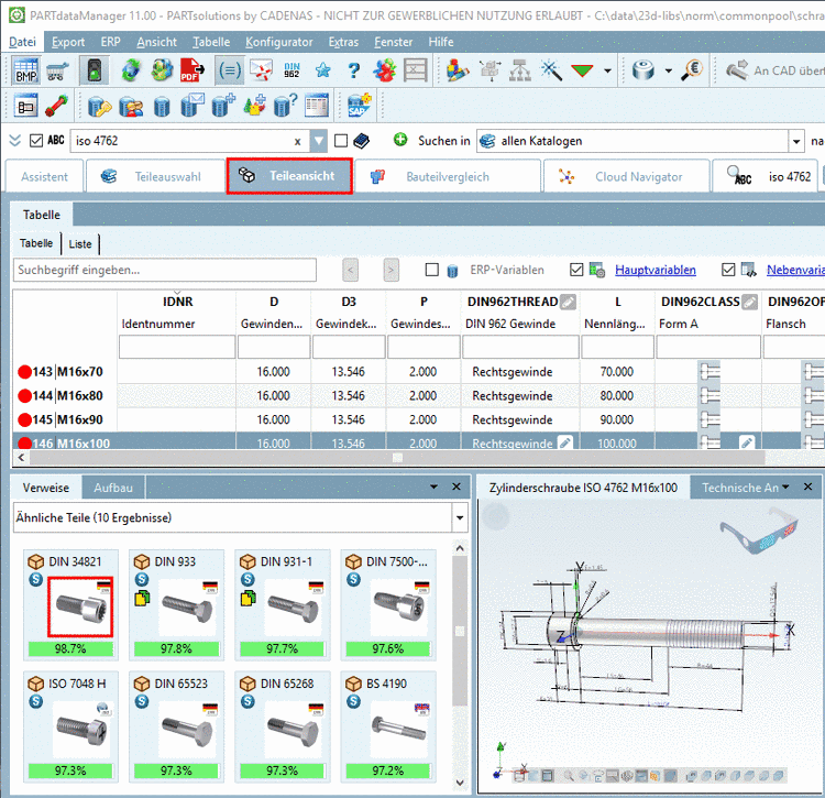 Die Funktion steht auf Projekt- und Verzeichnisebene sowohl in PARTdataManager[23], als auch in PARTproject zur Verfügung: