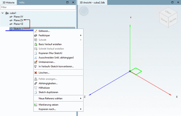 Sketch in der 3D Historie angezeigt.