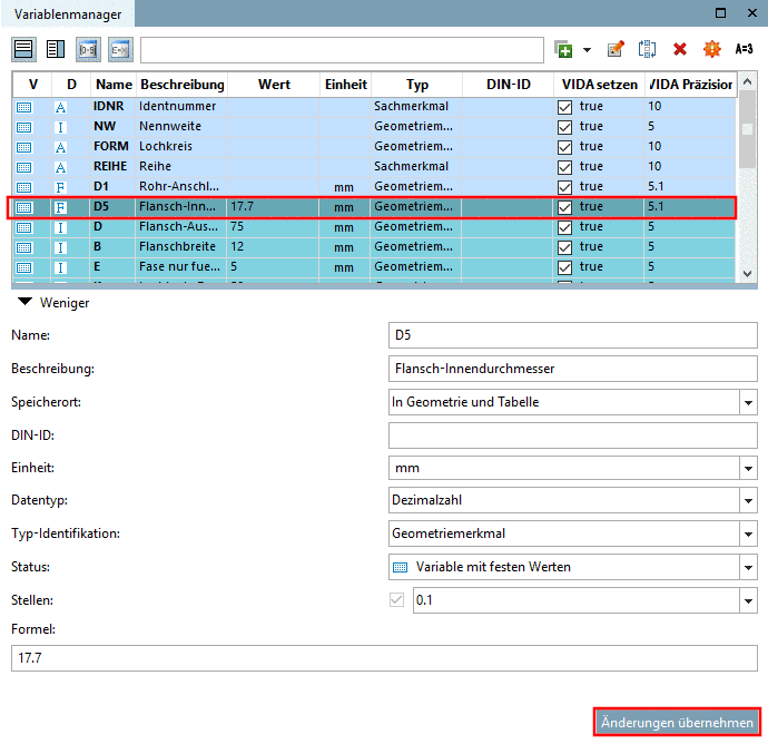 Sie die gewünschte Variable in der Tabelle des Variablenmanagers (oder