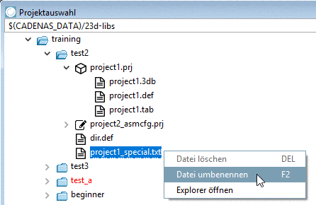 Die einzelnen Dateien (*.tab/tac, *.3db, *.asy, *.bmp, usw.) können umbenannt werden.