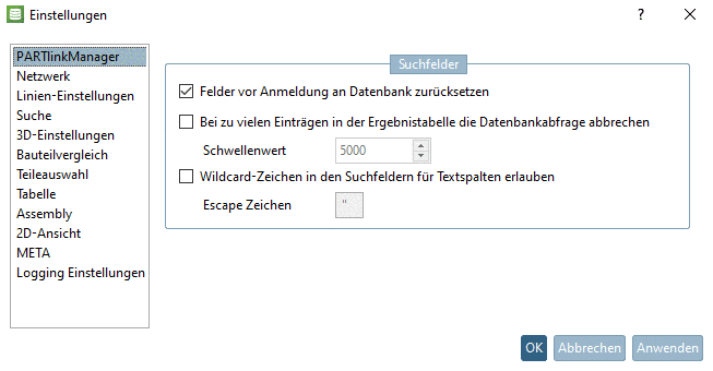 Wird die Option aktiviert, ändert sich das Wildcard-Zeichen von '*' auf '%'. Sollte in den Suchfeldern aber '%' als Teil der Textstrings vorkommen, muss es "escaped" werden. Ansonsten liefert die Suchabfrage auch falsche Ergebnisse.