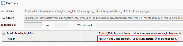 Der Eintrag wenigstens eines 3D-Modells ist verpflichtend! Wird keine 3db-Datei angegeben, erscheint beim TestMeta im Dialogfenster QA-Check die entsprechende Fehlermeldung. Optional können Sie den Dialogbereich Varianten verwenden, wenn Sie verschiedenen Variablenwerten (Tabellenzeilen) bestimmte 3D-Modelle zuweisen möchten. | |