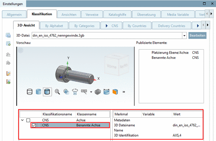 Die Vorgehensweise entspricht der unter Abschnitt 5.12.10, „Normteile klassifizieren für Platzierungsdialog“ beschriebenen.