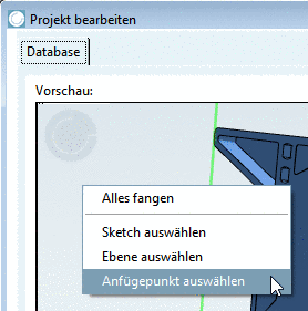 Klicken Sie unter Projekt bearbeiten -> Vorschau auf den Kontextmenübefehl Anfügepunkt auswählen.