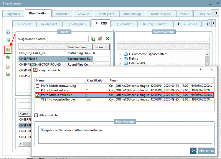 .Aktivieren Sie das Plugin "Prüfe Attribut Variablen" und bestätigen Sie mit .