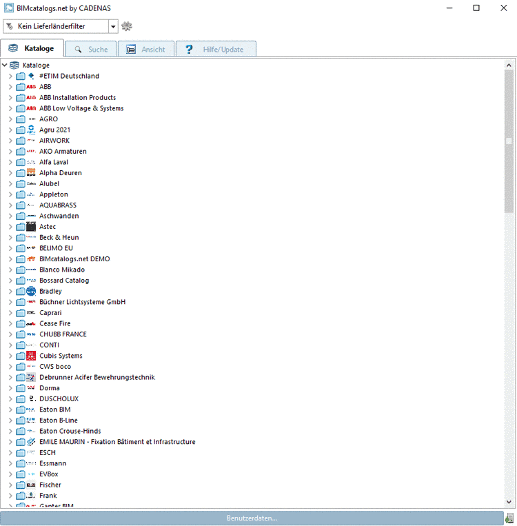 Das Plugin startet mit einer Liste aller Herstellerkataloge, die Sie manuell durchsuchen können.