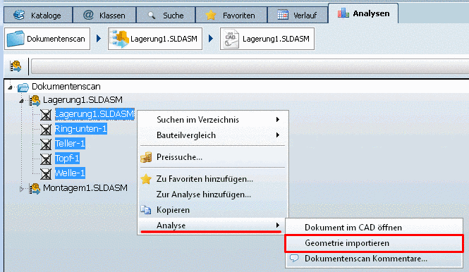 Damit Purchineering-Analysen auf den DokumentenScan angewandt werden können, müssen die Geometrien importiert werden.