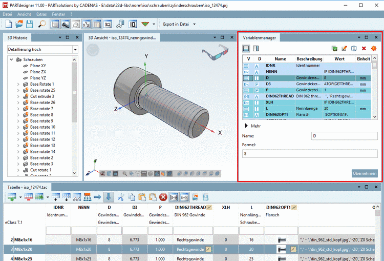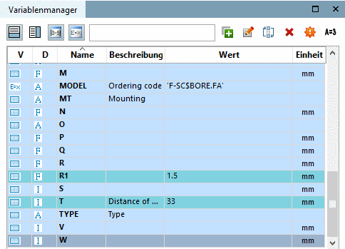 Funktion: Im Dockingfenster Variablenmanager können Sie neue Variablen anlegen bzw. Attributwerte von bereits angelegten Variablen ändern.
