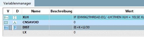 Der Farbcode signalisiert den Speicherort. Details hierzu finden Sie unter Abschnitt 7.8.9, „Variablenmanager - Die einzelnen Parameter“ -> Punkt Speicherort.