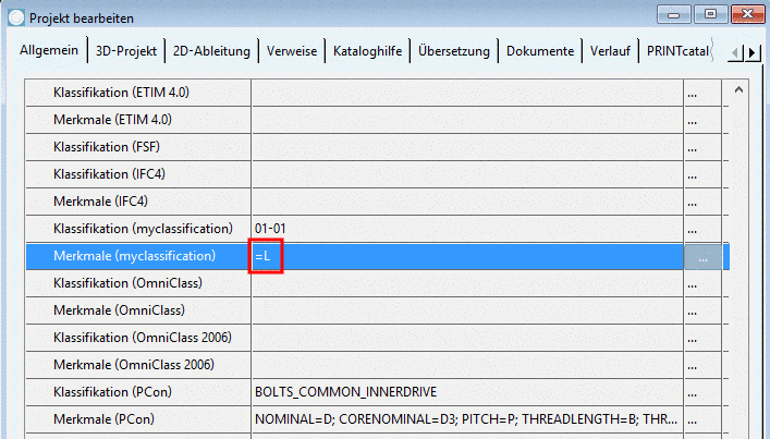 Die Durchsuchen-Schaltfläche im zugehörigen Merkmale <Name>-Feld wird erst aktiv, wenn eine Klassifikation bereits zugewiesen wurde. | |