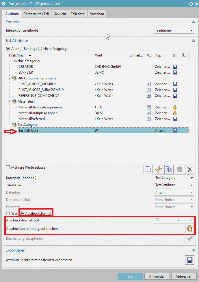 Modell-Attributs lesen und - wenn erlaubt - Kategorie und Ausdrucksformel