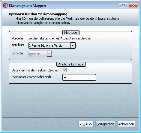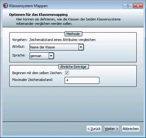 Hier können sie definieren, wie die Klassen der beiden Klassensysteme miteinander verglichen werden sollen.