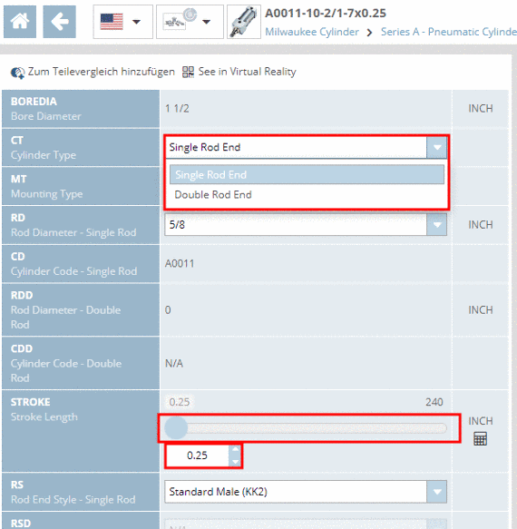 Die Variablenansicht öffnen Sie in der Tabellenansicht mit Klick auf die Zeilennummer, das Vorschaubild oder die Teilebezeichnung.