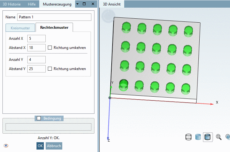 Bestimmen Sie unter Anzahl Y die Anzahl der Musterelemente in Y-Richtung.