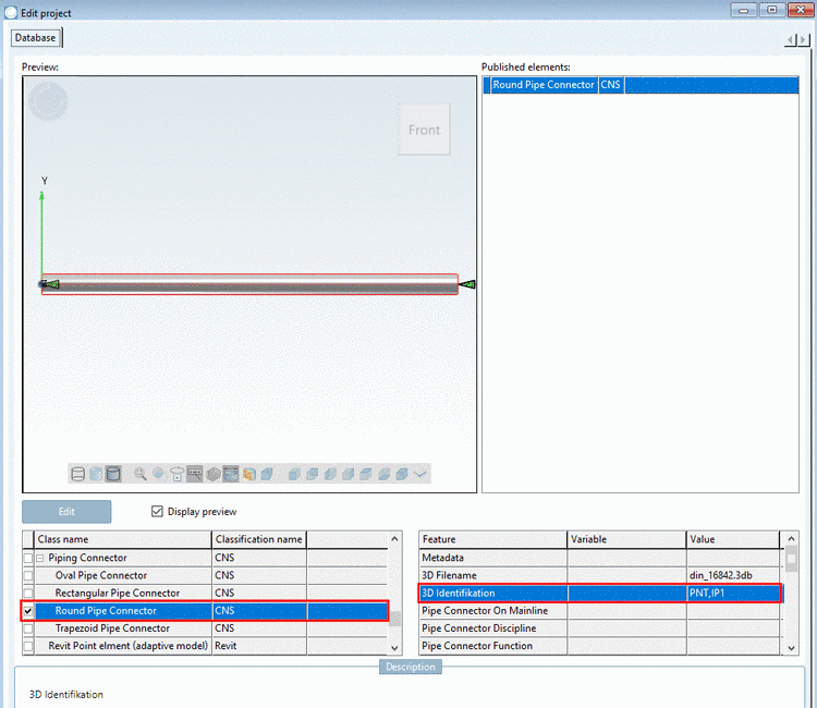 Aktivieren Sie unter Klassenname die Klasse Round Pipe Connector.