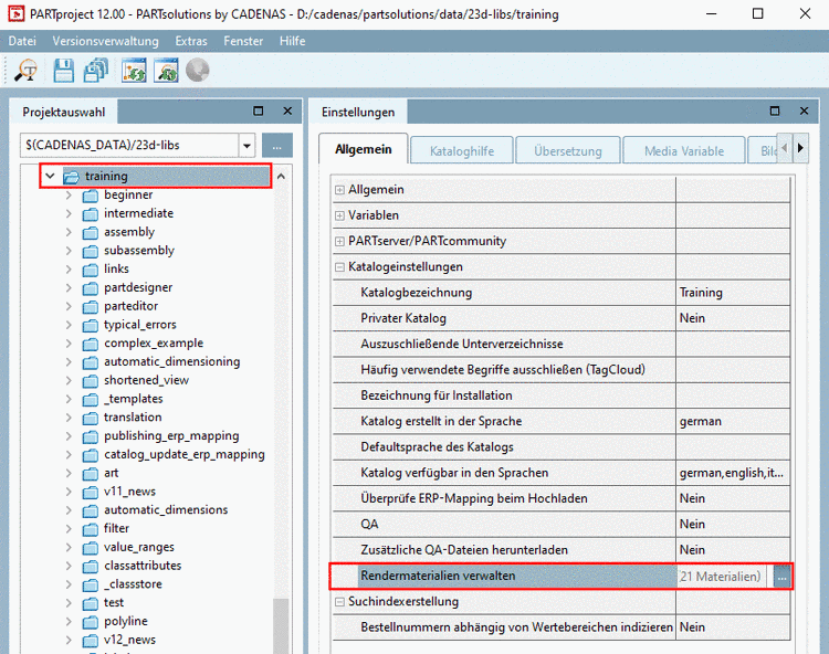 Definieren Sie die gewünschten Textur-Label in PARTproject unter Rendermaterialien verwalten.