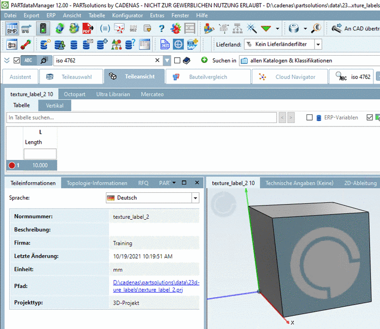 Aktualisieren Sie den Anzeigeindex und öffnen Sie das Bauteil in PARTdataManager.