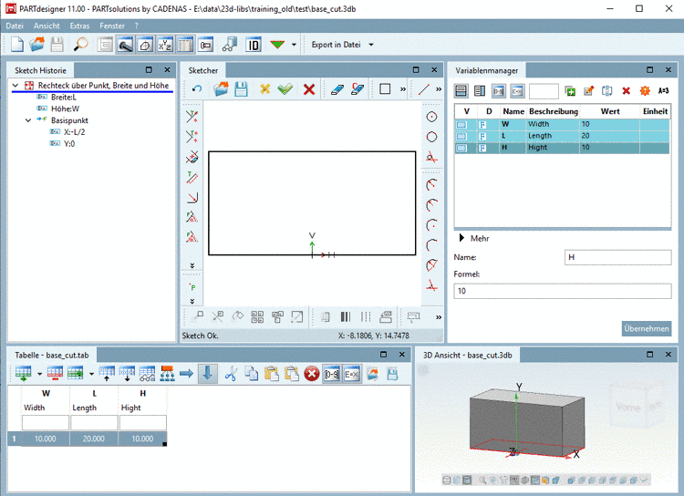 Ausgangssituation: Quader erstellt auf Plane ZX