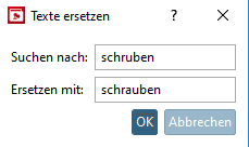 Im Dialogfenster Texte ersetzen können Sie die aktuell markierte Spalte nach einem bestimmten Begriff durchsuchen lassen und diesen durch einen anderen ersetzen.