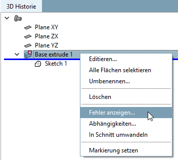 Um sich den Fehler im Wortlaut anzeigen zu lassen, klicken Sie auf die Option Fehler anzeigen... im Kontextmenü.