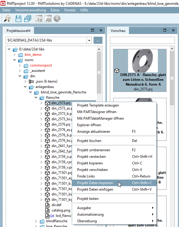 Mittels Kontextmenübefehl Projekt Daten kopieren können Sie gezielt bestimmte Projektdaten von einem Projekt in ein anderes kopieren.