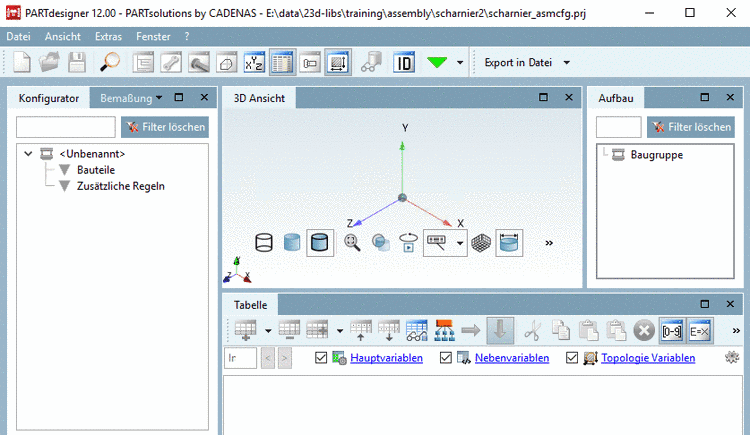 _asmcfg.prj" an den vergebenen Namen angehängt.Klicken Sie im Kontextmenü der Assembly-Konfiguration auf den Befehl Mit PARTdesigner öffnen.