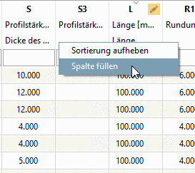 Mit Spalte füllen kann eine ganze Spalte komplett