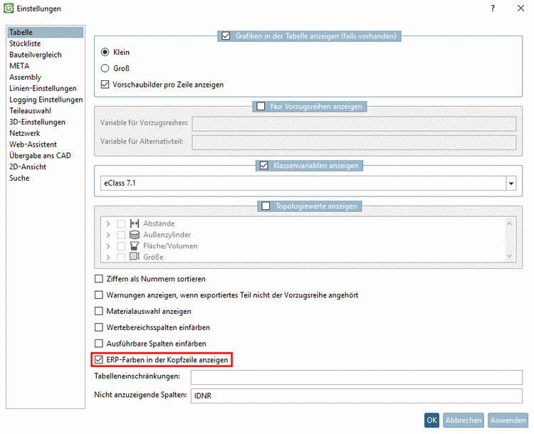 Automatisches Neuberechnen ein/aus Optionen für DIN962 ein-/ausblenden Zu vermeidende Teile ein-/ausblenden Die funktionelle Steuerung erfolgt in partsol.cfg -> Block [EOLService].