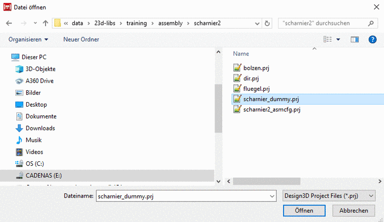 Wählen Sie eine Projektdatei (*.prj) aus und bestätigen Sie mit Klick auf .