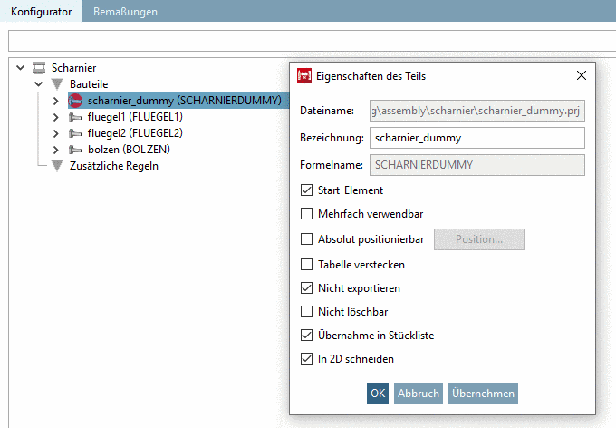 gekennzeichnet.Mehrfach verwendbar: Ein Bauteil kann in verschiedenen Positionen und mit unterschiedlichen Maßen in die Baugruppe einfügt werden.