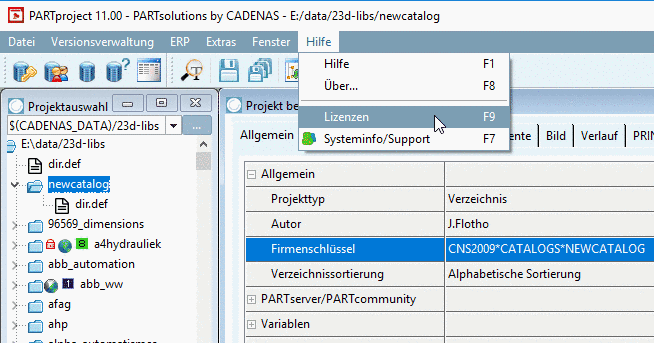 In Zusammenhang mit dem Lizenzschlüssel steht auch die Katalogbezeichnung. Diese kann für Namenserweiterungen genutzt werden. Außerdem können Leerzeichen und Groß- und Kleinschreibung verwendet werden.