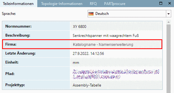 Die Katalogbezeichnung wird auch in den Teileinformationen angezeigt.