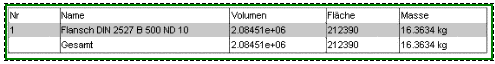 • Physikalische Tabelle: Mittels dieser Option können Sie physikalische Informationen wie Volumen, Fläche und Masse anzeigen.