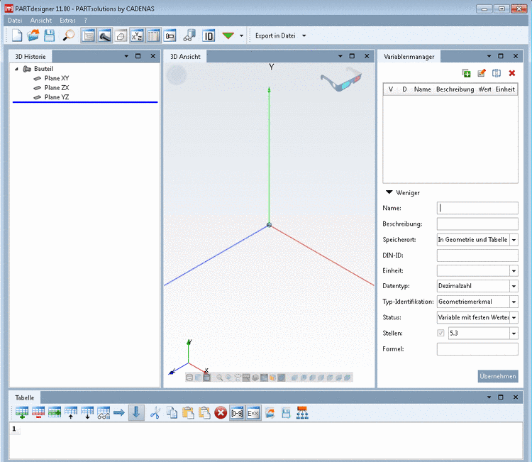 PARTdesigner öffnet sich im Geometrie- und Tabellenmodus (Speicherort "In Geometrie und Tabelle").