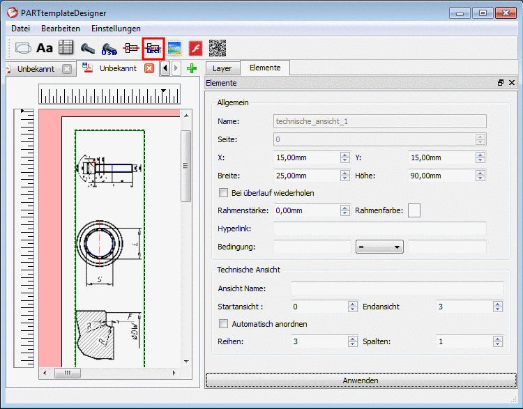 Alternativ können Sie auch einen Bereich angeben. Wählen Sie den Wert für Endansicht groß genug, damit die Technischen Ansichten in jedem Fall dargestellt werden können.