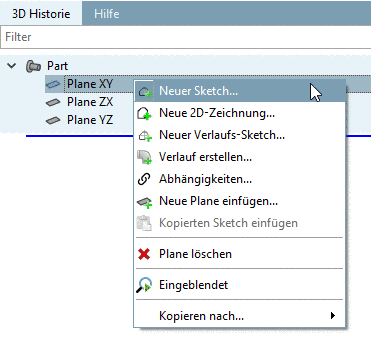 Wenn Sie einen neuen Sketch für ein Bauteil erstellen wollen, gehen Sie folgendermaßen vor: